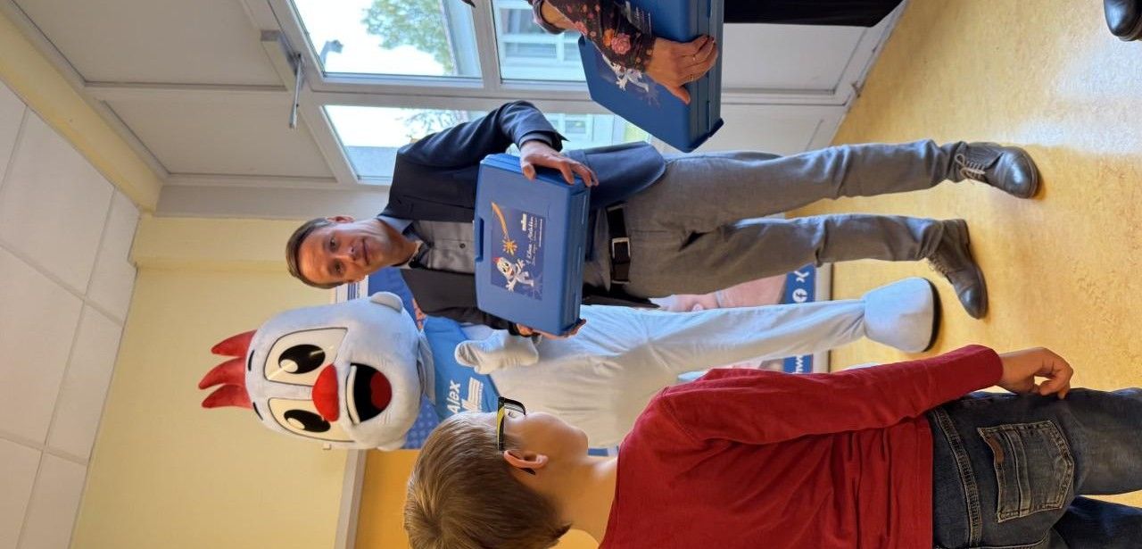 Anlässlich des 20. Jubiläums besucht das sympathische Stadtwerke-Maskottchen Alex sämtliche 34 ersten Schulklassen und übergibt jedem Kind einen persönlichen blauen Malkoffer. Darin befinden sich Filz- und Buntstifte, Pinseln, wasserlöslichen Farben sowie altersgerechte Begleitkarten. Die Materialien laden ein, die Themen Energieversorgung und Ressourcenschonung kreativ zu erkunden. Durch die Umsetzung eigener Bildideen erwerben die Schüler spielerisch Grundlagenwissen und entwickeln früh ein Bewusstsein für umweltgerechtes Handeln. Lehrer erhalten zusätzlich didaktisch aufbereitete umfangreiche Unterlagen.