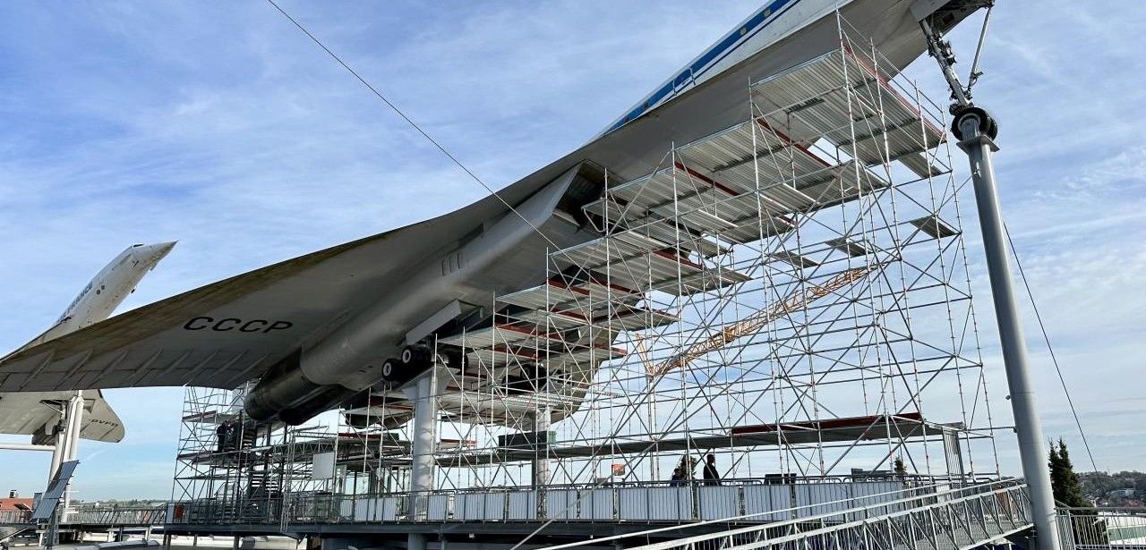 Zur Feier des 45-jährigen Jubiläums des Technik Museum Sinsheim nimmt die Restaurierung der majestätisch auf dem Hallendach positionierten Tupolev Tu-144 Fahrt auf. Nachdem der Überschalljet 25 Jahre lang Turbulenzen durch Witterung, UV-Strahlung und Temperaturschwankungen ausgesetzt war, sind Lackschäden und Korrosion unvermeidlich. Federführend unterstützt der gemeinnützige Museumsverein mit ehrenamtlicher Expertise und Förderung. Die Wilhelm Layher GmbH & Co. KG liefert das Gerüst, während die Wolfgang Fuchs GmbH dessen fachgerechten Aufbau übernimmt.